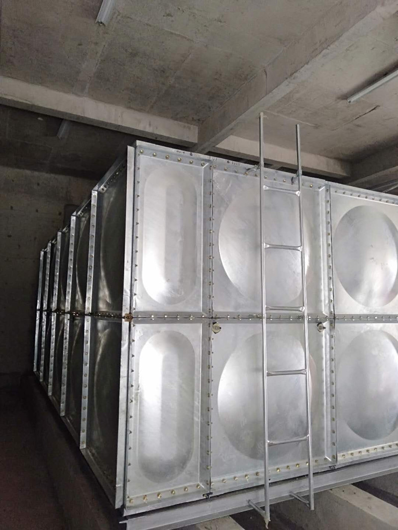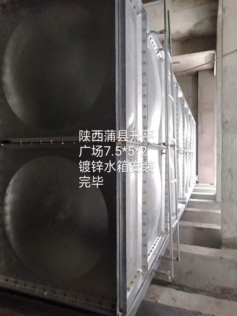 騰翔鍍鋅水箱主要采用優質的Q235鋼板沖壓而成,形成1000×1000、1000×500、500×500等標準板塊后經熱浸鍍鋅處理后形成鍍鋅水箱板。優點是:全螺栓連接,現場進行組裝,組裝快捷方便,組裝時采用密封條密封,不易出現漏水及密封不嚴現象。水箱體內特殊性拉桿結構,使力學性能更合理,高度可達到5米。鍍鋅水箱對安裝現場無特殊要求,無需吊裝設備,容積可滿足用戶要求。