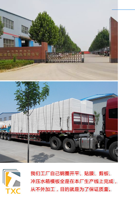 ![]() | 15年水箱工程設計、生產、安裝施工經驗 山東省騰翔集團武城模壓制品有限公司(TXC),坐落于素有“九達天衢、神京門戶”美譽之稱的美麗德州,公司主營業(yè)務為水箱、通風空調設備、精密玻璃鋼外殼產品。水箱產品包括:不銹鋼水箱、SMC玻璃鋼水箱、熱鍍鋅鋼板水箱、搪瓷鋼板水箱、噴塑鋼板水箱、BDF復合板地埋水箱及各種模壓配件、鍍鋅風管、通風設備等配套產品,同時可提供水箱的設計、生產、安裝一條龍服務及大型不銹鋼板、各種鐵板開平服務。精密玻璃鋼外殼產品包括:精密醫(yī)療器械外殼、工程機械外殼及汽車外殼等多種系列,并具備定制、生產、實驗、電氣元件裝配及檢測能力,其中SMC、玻璃鋼纏繞、雙面模RTM、真空袋RTM及玻璃鋼手糊(HLU)等多種生產工藝均達到合作認可,公司開展對銷貿易和轉口貿易,主要出口到歐美等國家,現(xiàn)已與東南歐洲等國家建立良好的長期貿易往來,已實現(xiàn)了出口有市場、銷售有網絡。本著用戶至上互惠互利、質量好、以誠相待的原則和宗旨熱烈歡迎各界廠家和個人前來洽談貿易和各種形式的經濟合作。 經過公司員工的不懈努力,公司現(xiàn)已成為安全生產標準化三級企業(yè),武城玻璃鋼暨新材料企業(yè)聯(lián)盟會員,武城縣玻璃鋼復合材料協(xié)會會員,符合ISO9001:2015質量管理體系認證,健康與安全認證,符合GB/T24001-2004idt ISO14001:2004環(huán)境管理體系認證,不銹鋼飲用水箱通過上海機械研究所檢驗,并通過了山東省國產涉及飲用水衛(wèi)生安全產品衛(wèi)生許可批件”,2013年固定資產投入先進企業(yè),2018年度轉型升級進步獎,2018年度在環(huán)保工作中獲得具有社會責任企業(yè)獎,2018年度全縣產業(yè)發(fā)展“雙創(chuàng)”示范企業(yè),2019年度納稅先進企業(yè),2013年成功制作地理式消防給水設備、箱泵一體化系列給水設備等等產品得到廣大客戶的好評,您的滿意是“騰翔”人永恒的追求!---科技創(chuàng)新,質引未來。 |